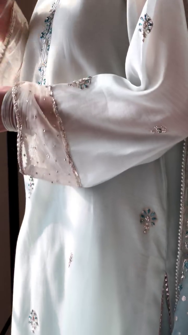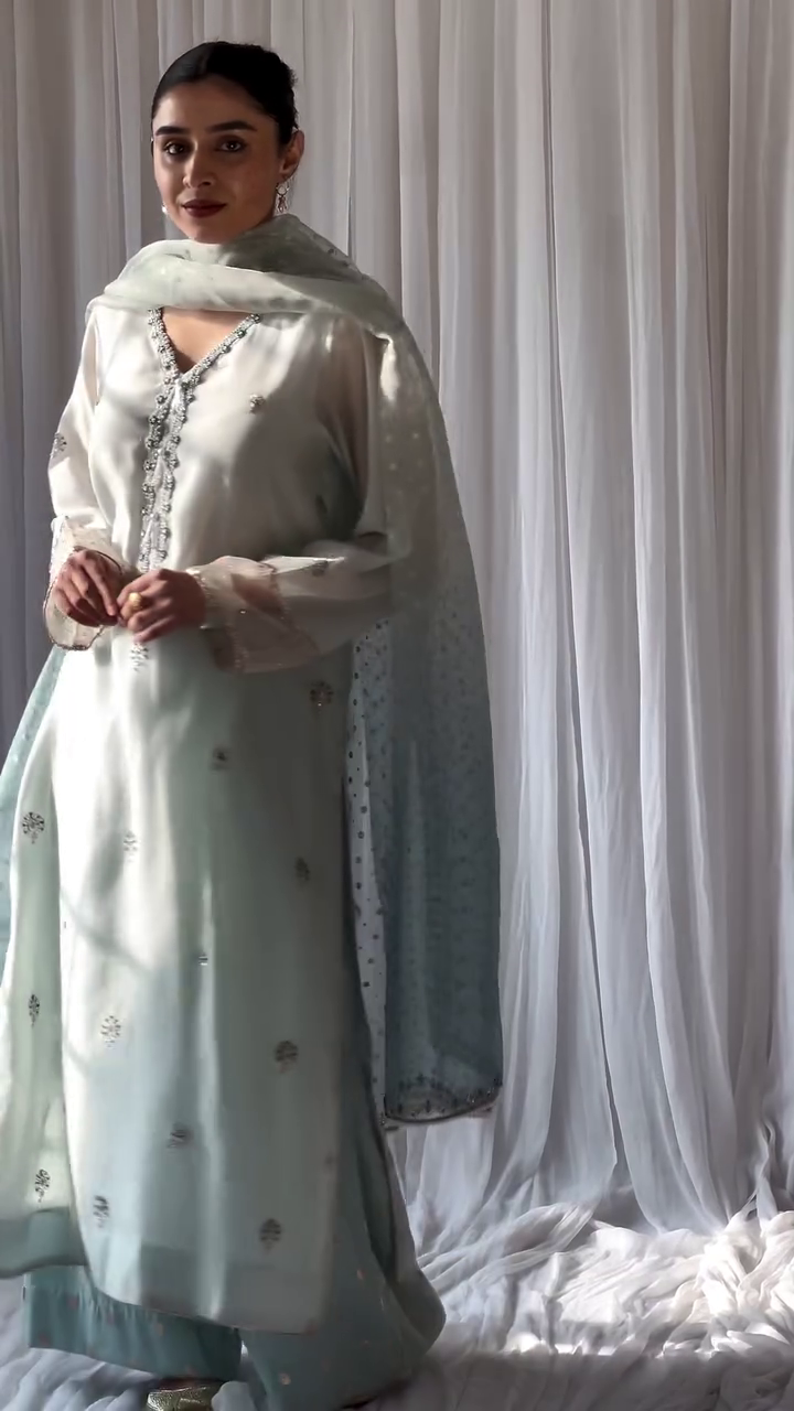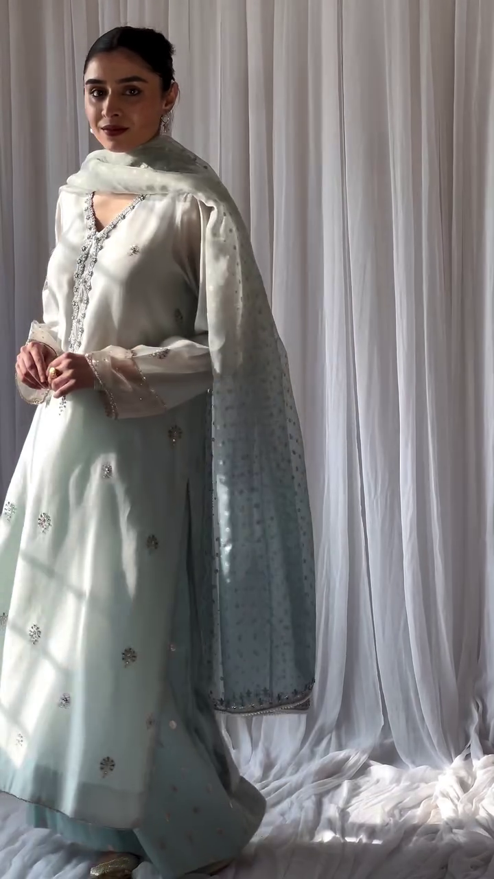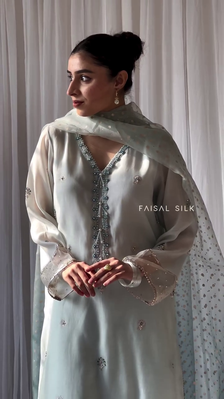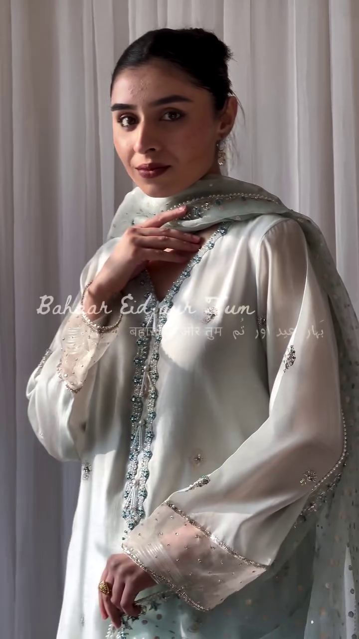Discover the elegance of Eid with our “Bahaar Eid aur Tum” collection. This 3-piece handspun silk lawn suit, in pastel blue, is adorned with graceful block prints and fine resham embellishments, offering a blend of tradition and sophistication for your festive wardrobe. Limited pieces available.