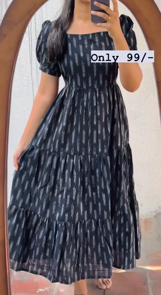 Be the first to review “Black Cotton Printed Ruffle Dress For Regular Wear”