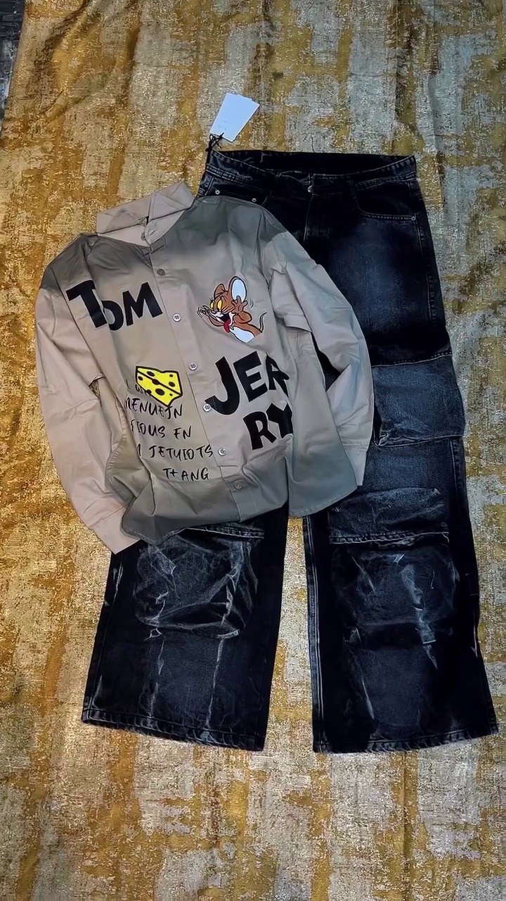 Digital Printed Long Sleeve Men’s Shirt, Polyester Character Print