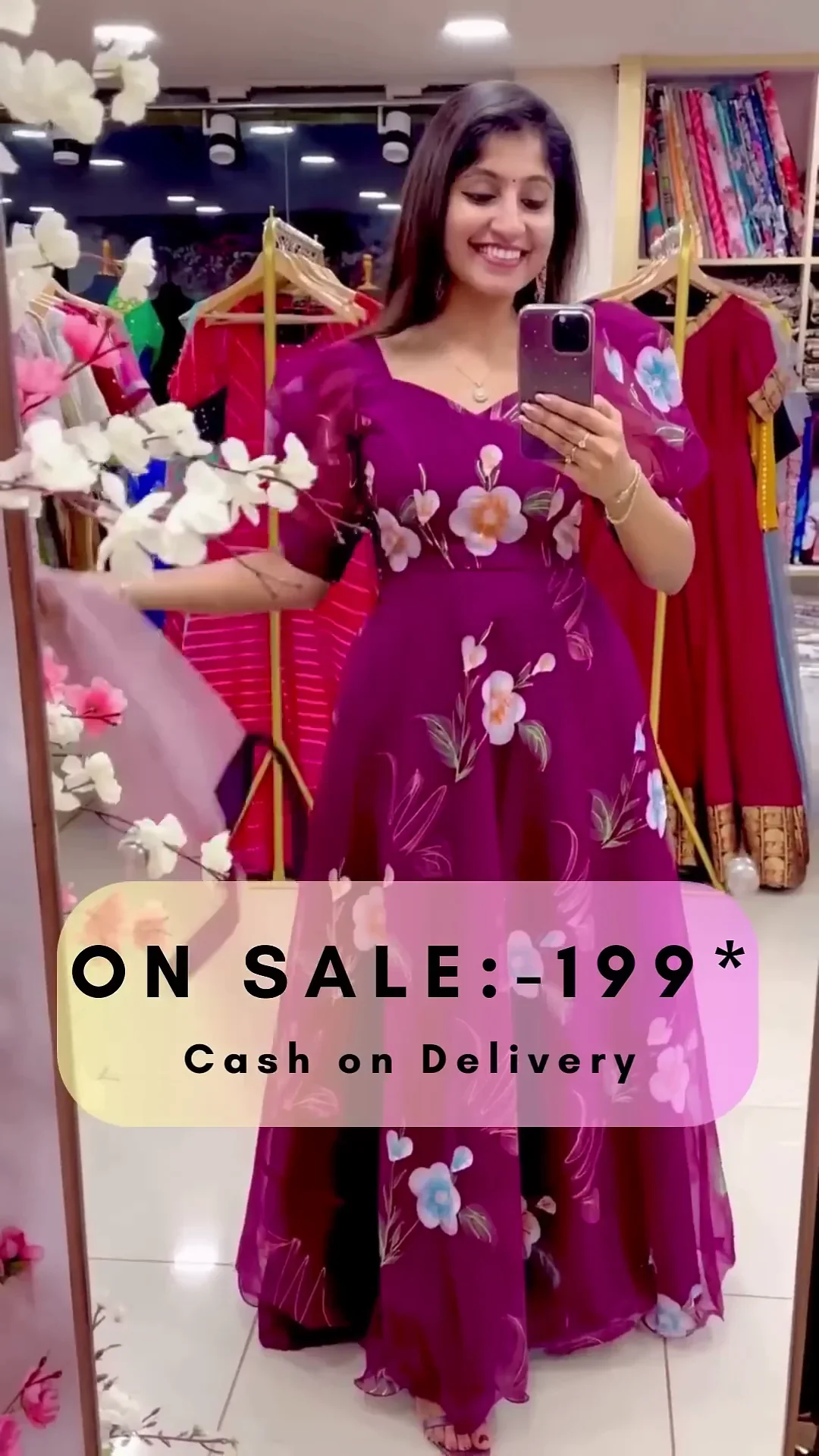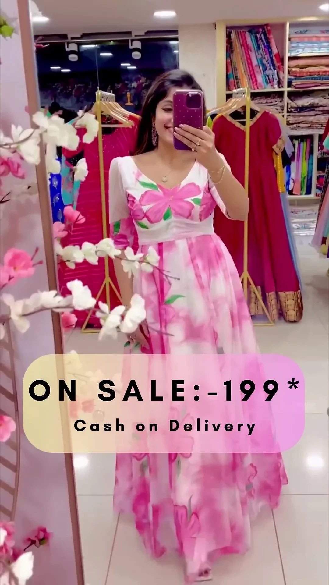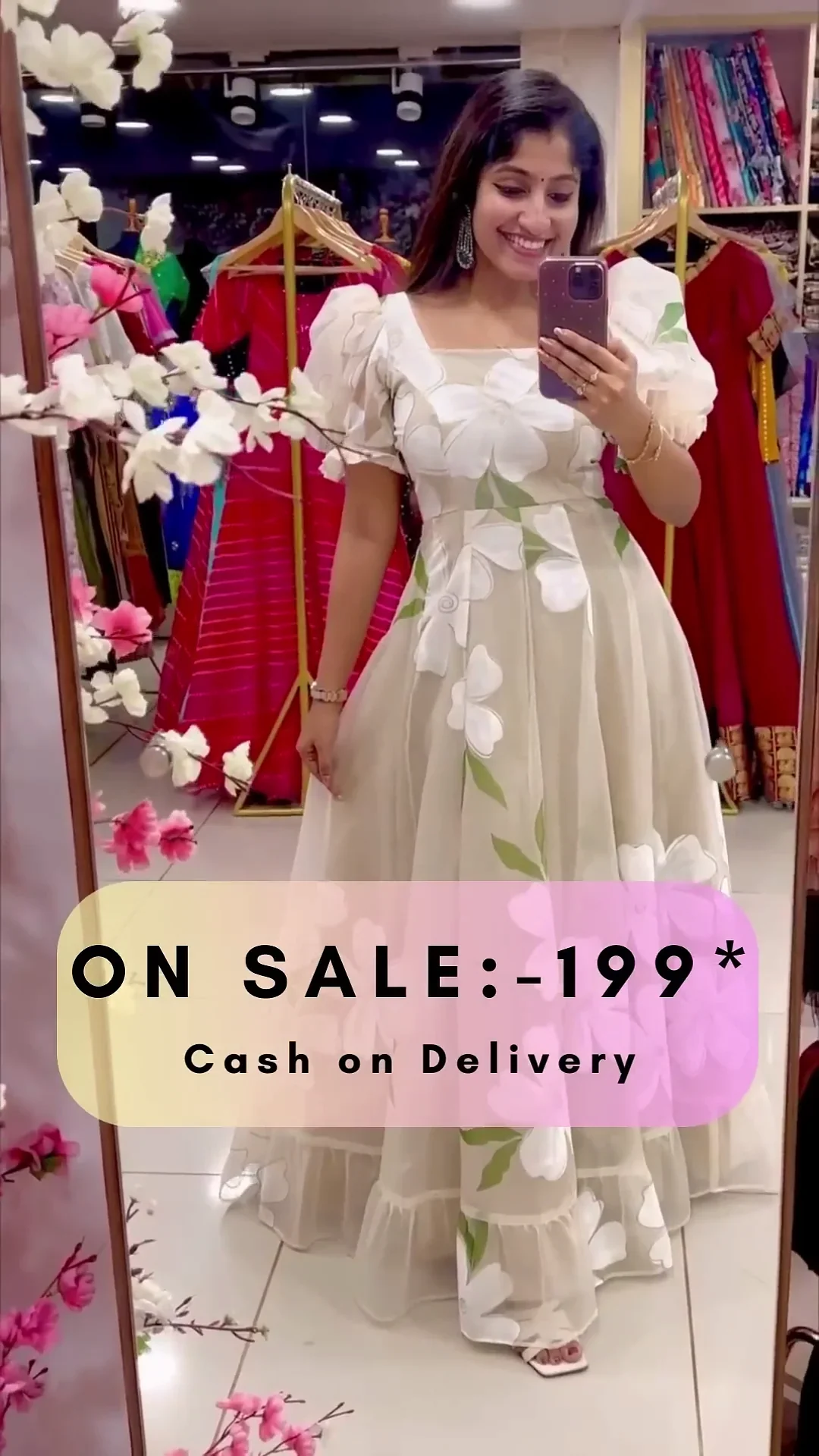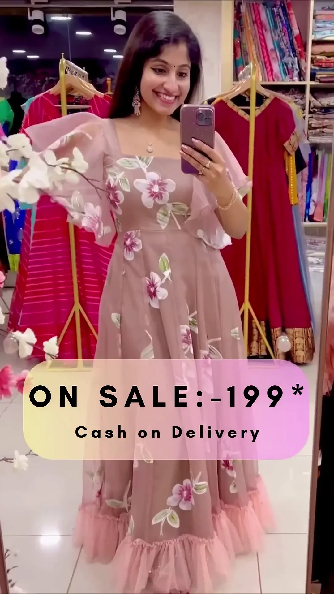 + Free ShippingFabric – hand painted floral organza. (with full lining, lining mandatory).