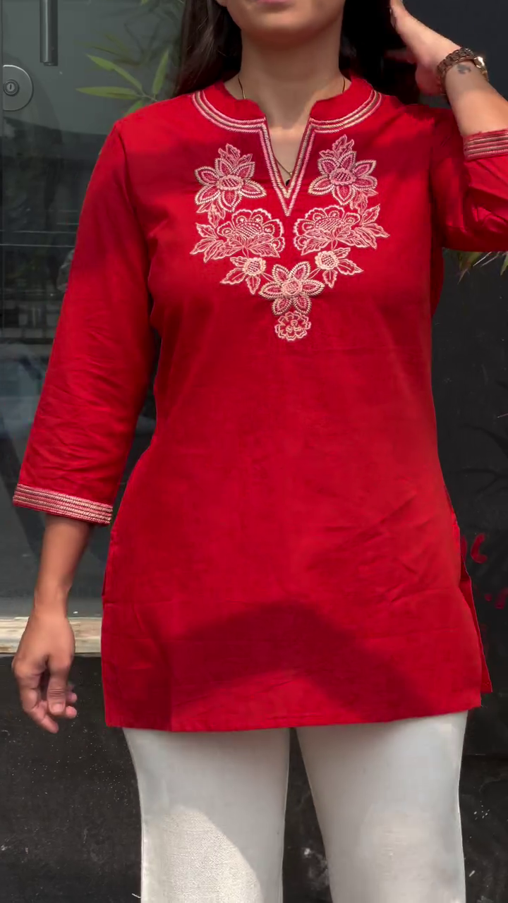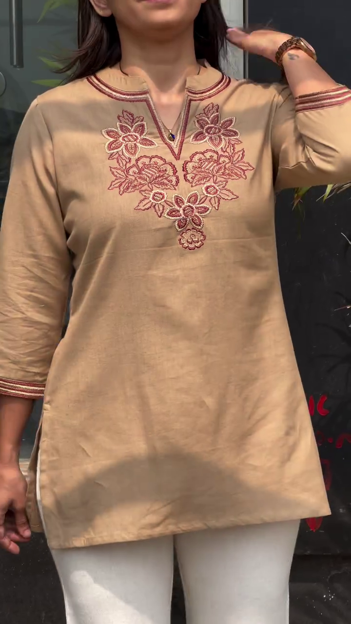Be the first to review “Floral Yoke Design Mandarin Collar Thread Work Pure Cotton Straight Kurta”