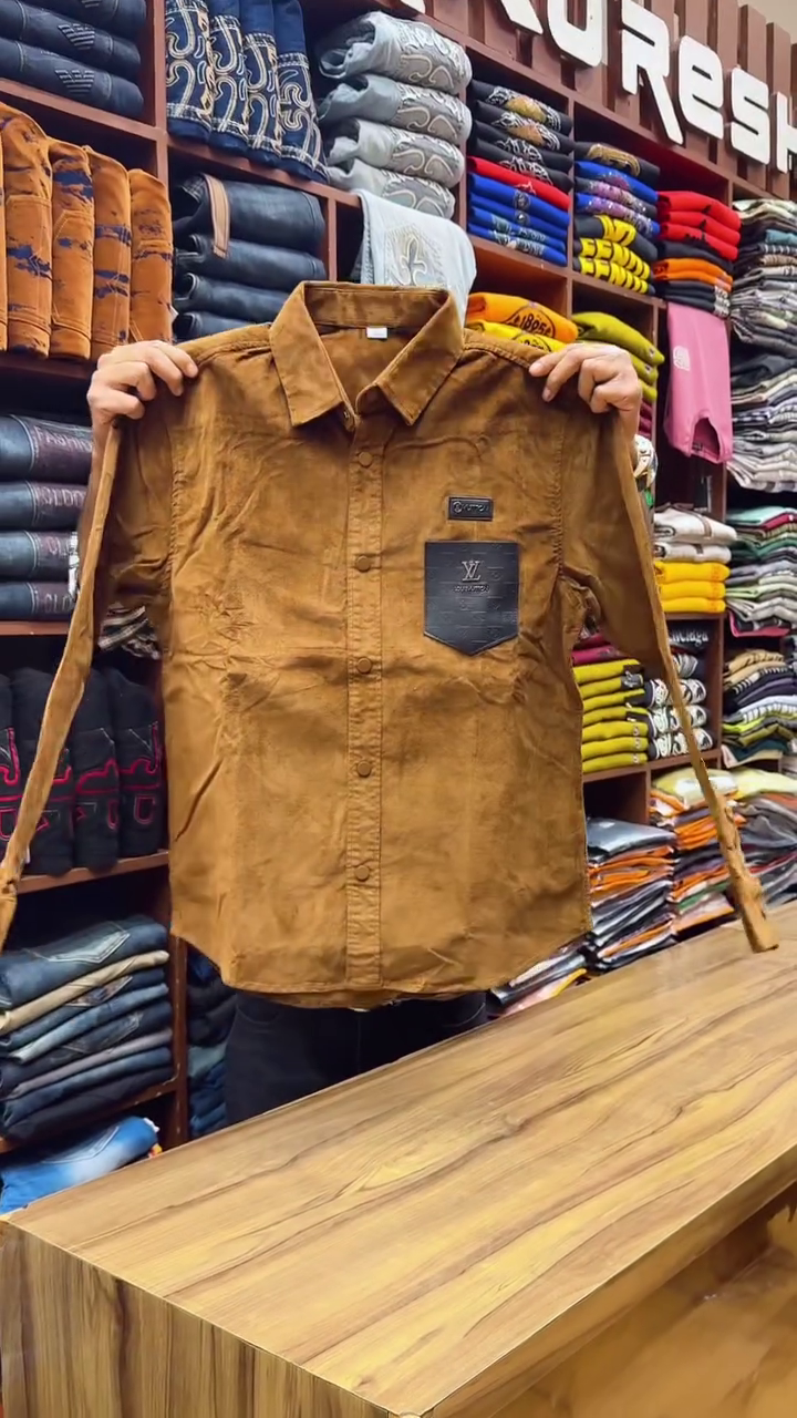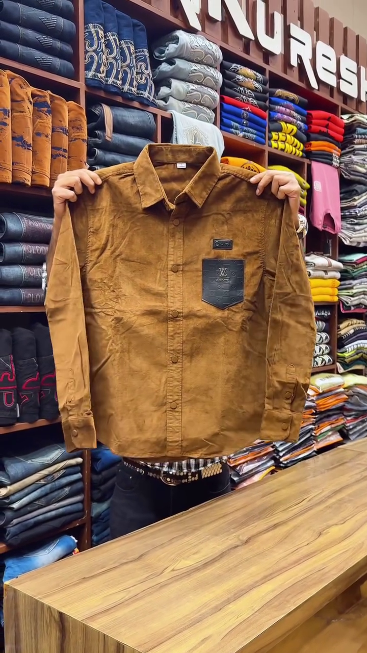 Brown textured opaque Casual shirt ,has a spread collar, button placket, 1 flap pocket, long roll-up sleeves, curved hem