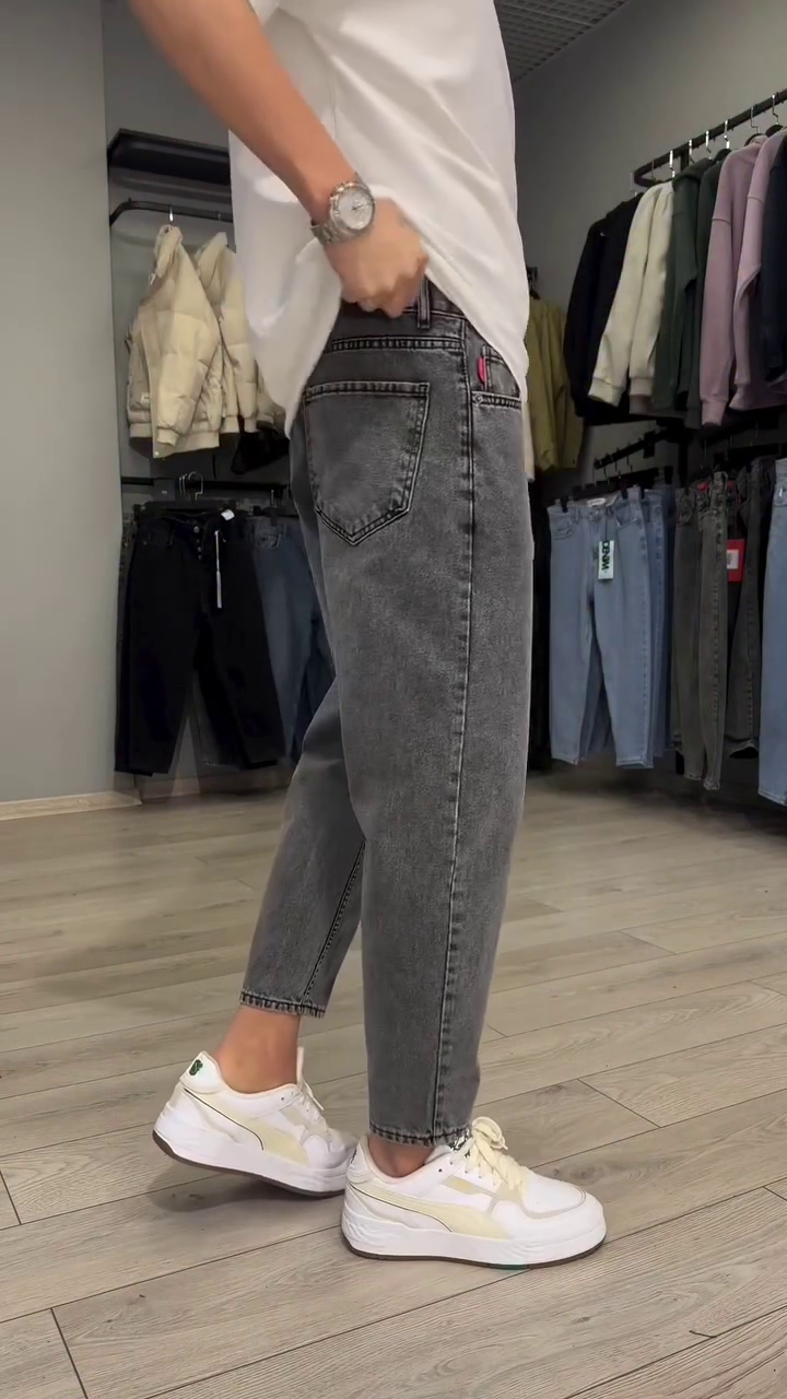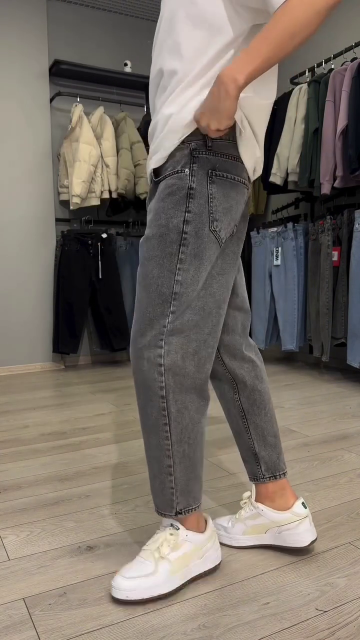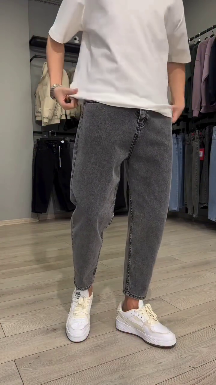 Men Grey Solid Balloon Fit Mid-Rise Clean Look Light Fade Stretchable Jeans