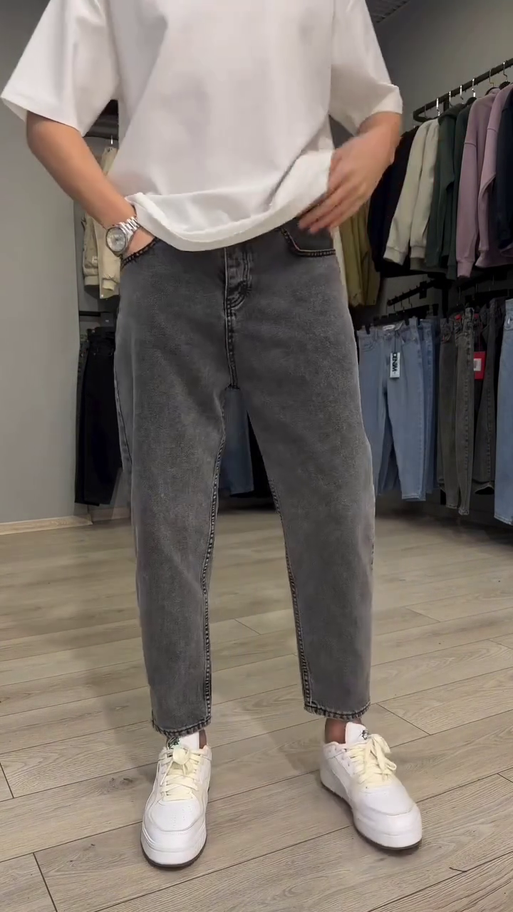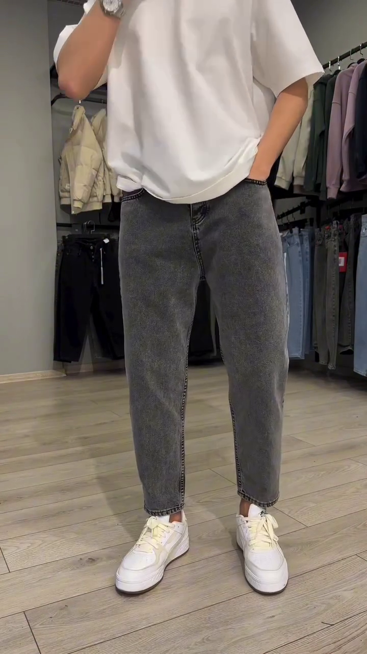 - Medium shade, light fade grey jeans