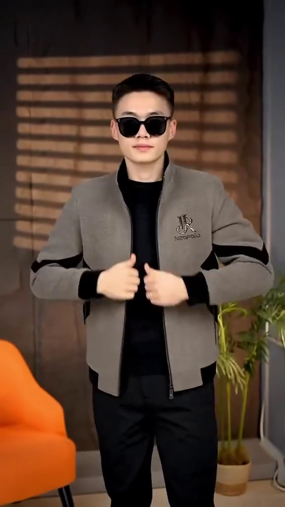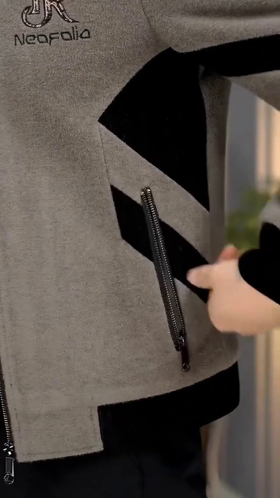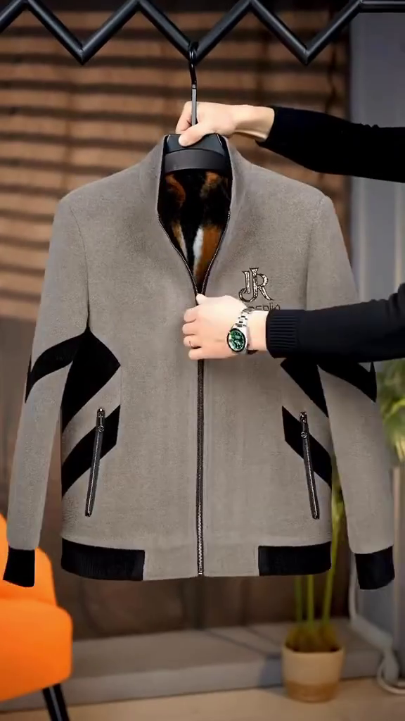 Pockets: Equipped with slanted, zippered side pockets, emphasizing the jacket’s sporty and functional design.