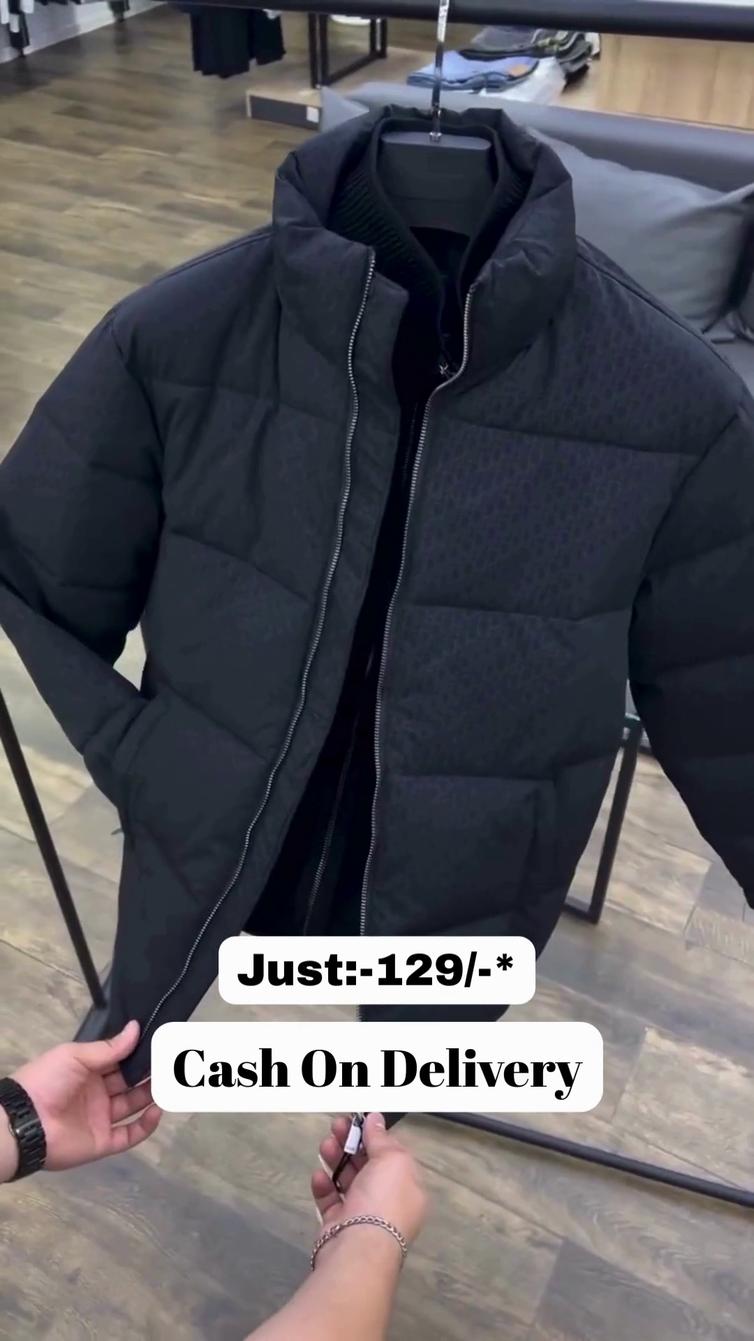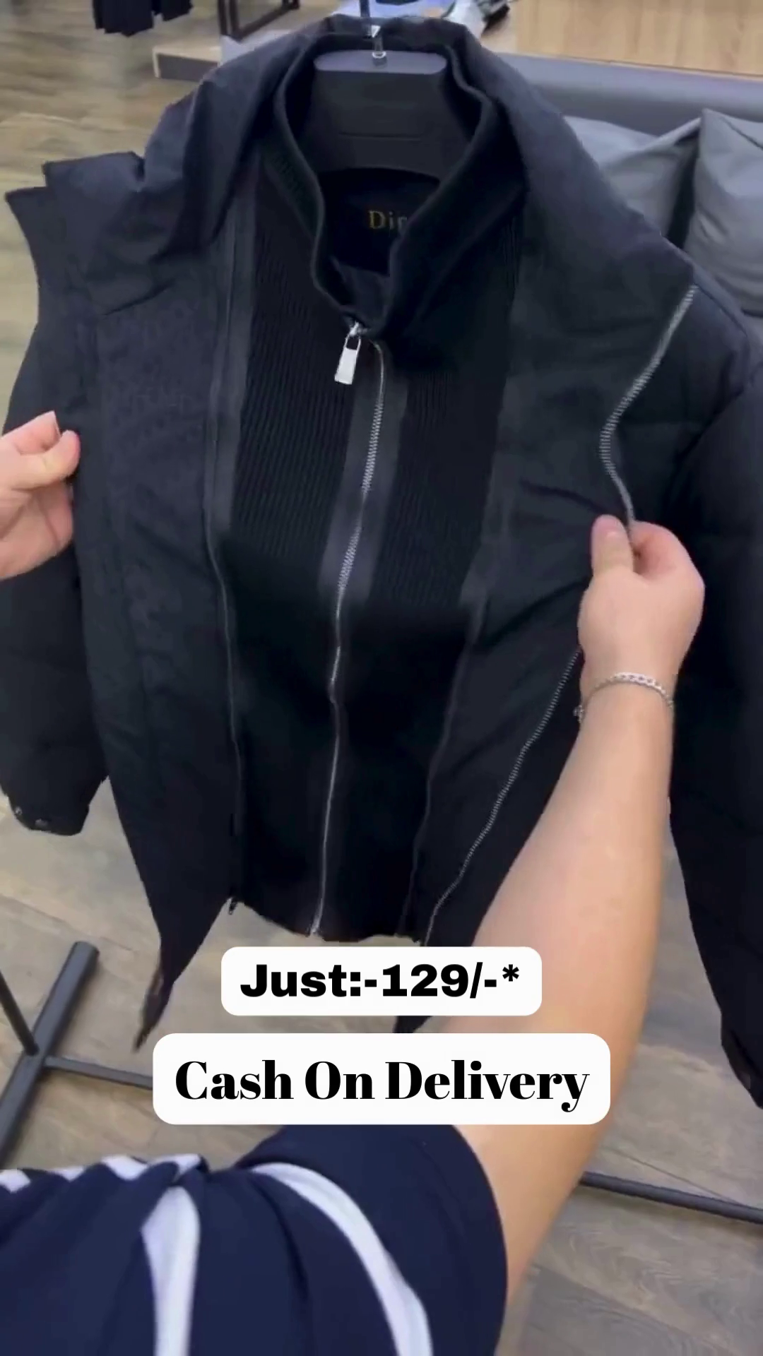 • With a stand-up collar, zip pockets and elasticized cuffs