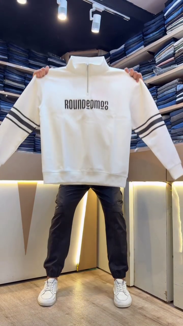 White printed sweatshirt has a hooded, na pockets, long sleeves, closure, straight hem