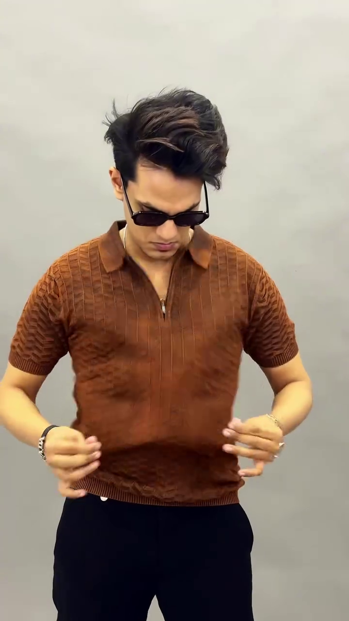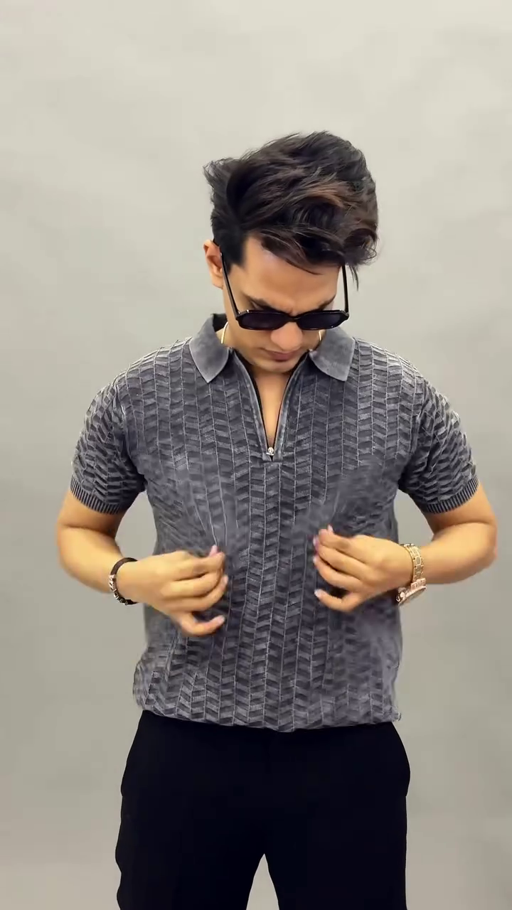 Self Design Polo Collar Short Sleeves Merino Woollen Regular T-shirt