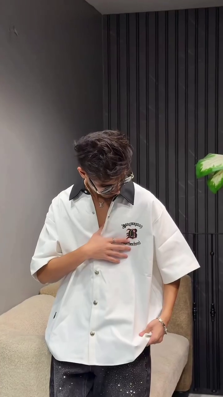 Beige, brown and white checked opaque casual shirt, has a spread collar, button placket, 1 patch pocket, long regular sleeves, curved hem