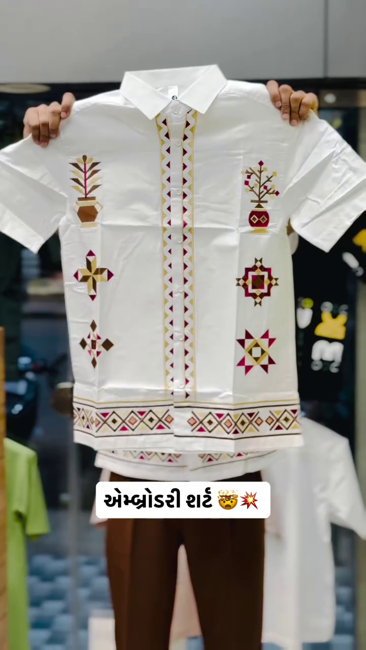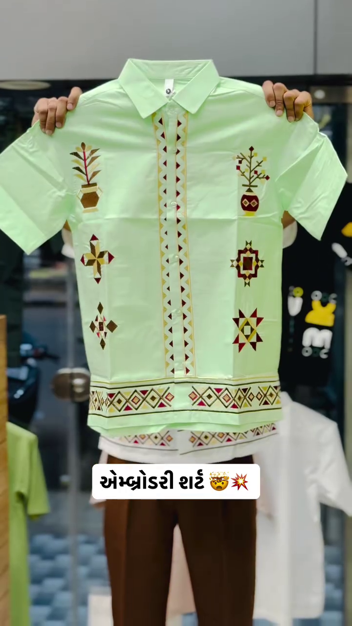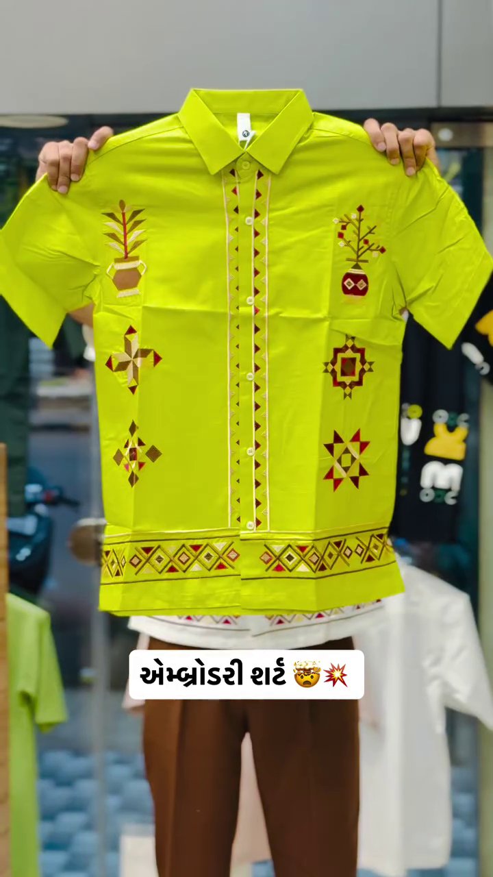 - ARTISTIC TRIBAL EMBROIDERY: Make a bold statement with intricate multi-color tribal motifs embroidered across the full front of the shirt. This detailed, artistic design, featuring prominent mustard and dark green hues on a black base, elevates the garment from a simple shirt to a unique, wearable piece of art that showcases your distinctive style.