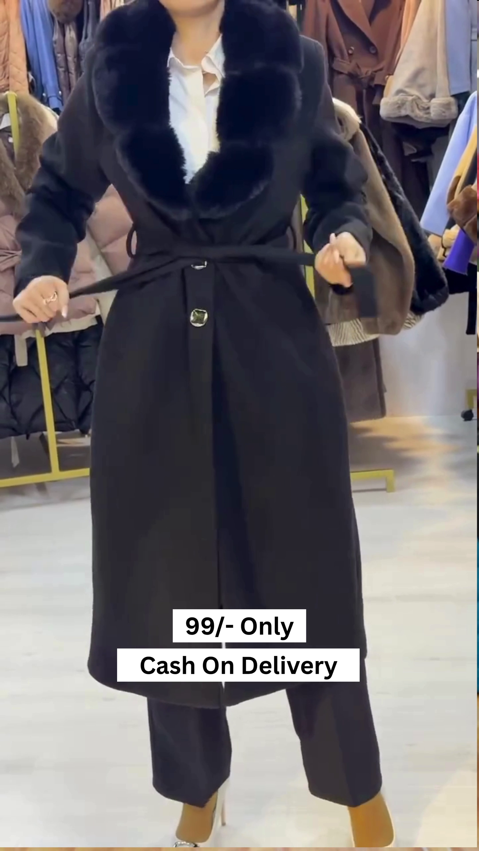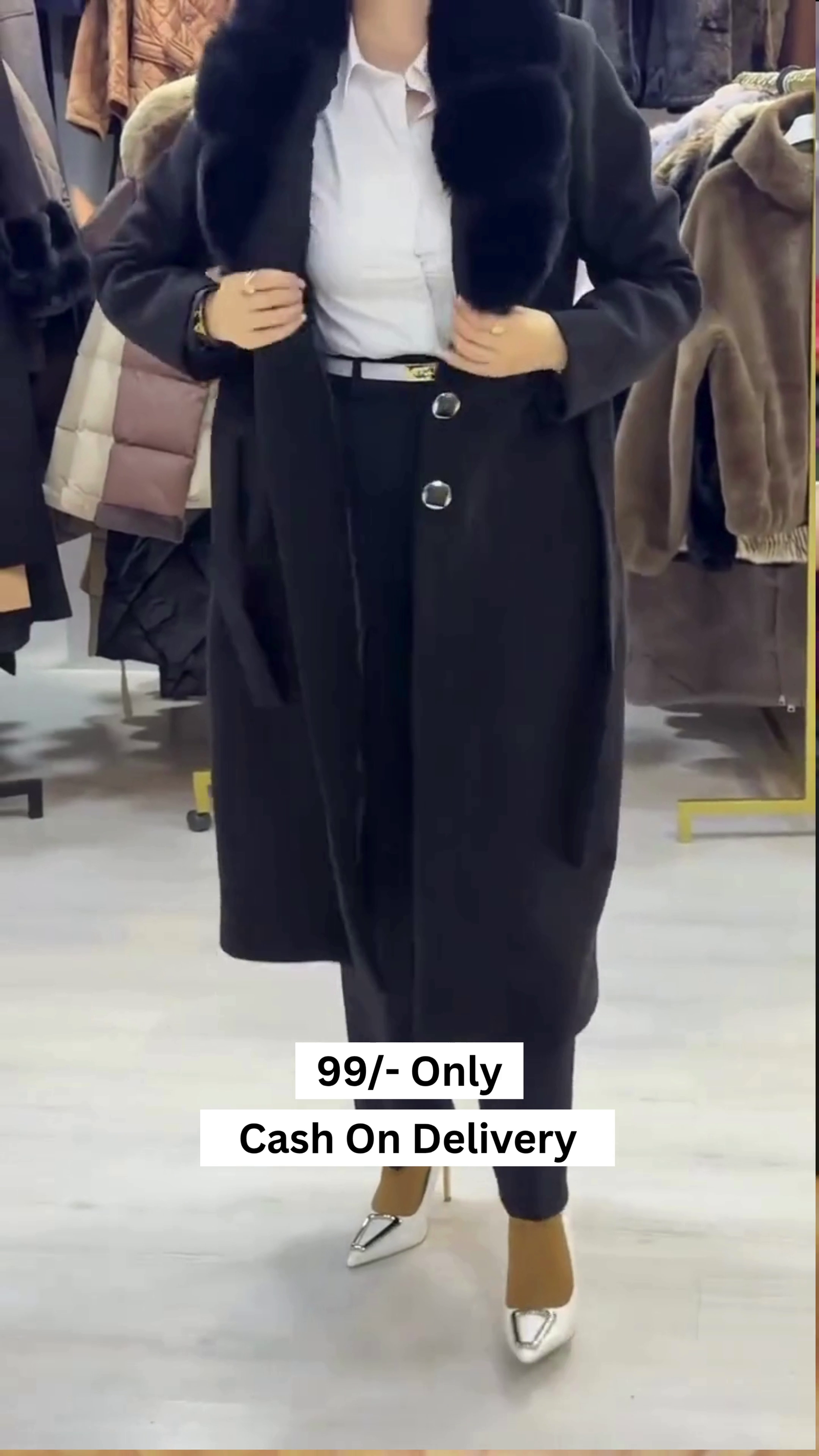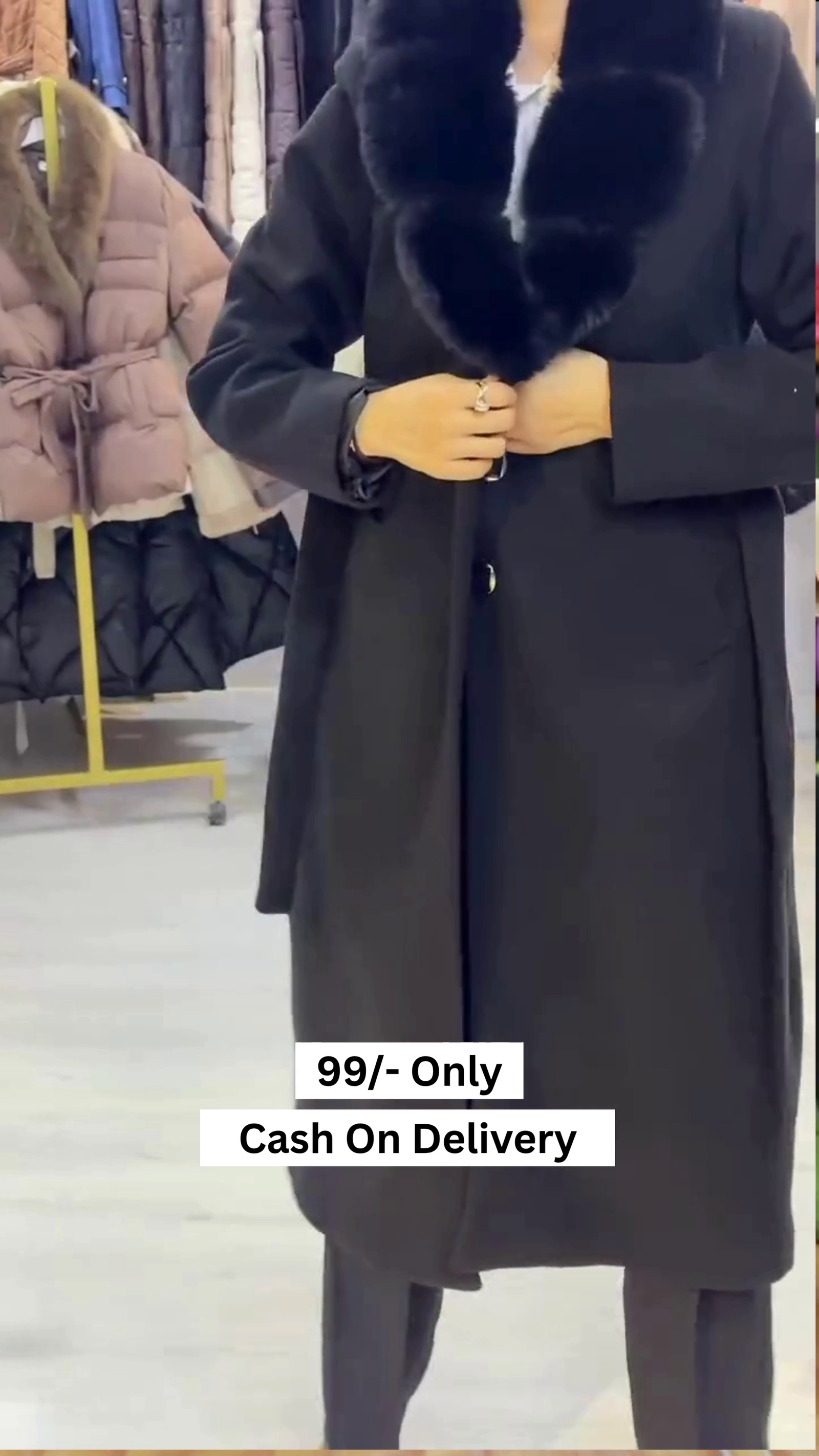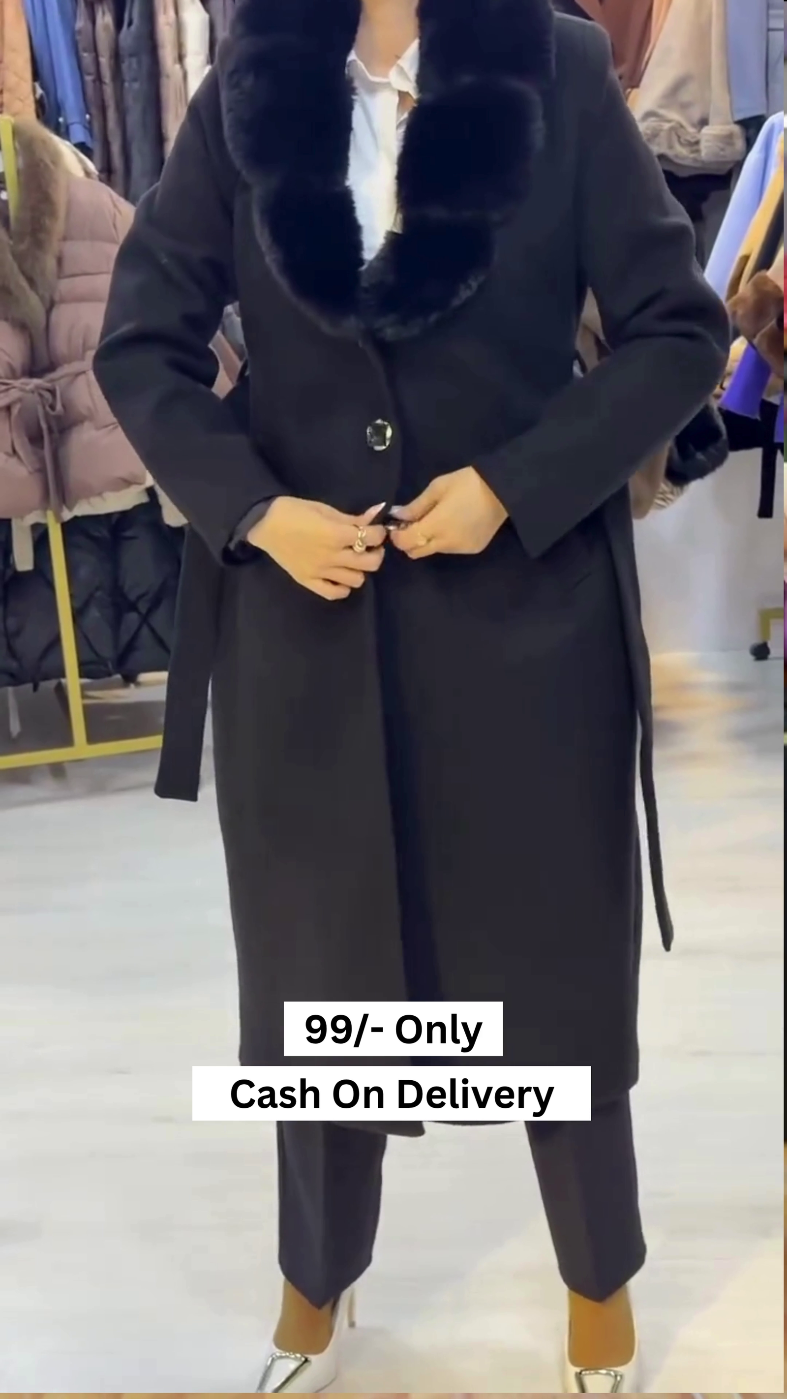 Be the first to review “Women Black Solid Double Breasted Fur Collar Coat”
